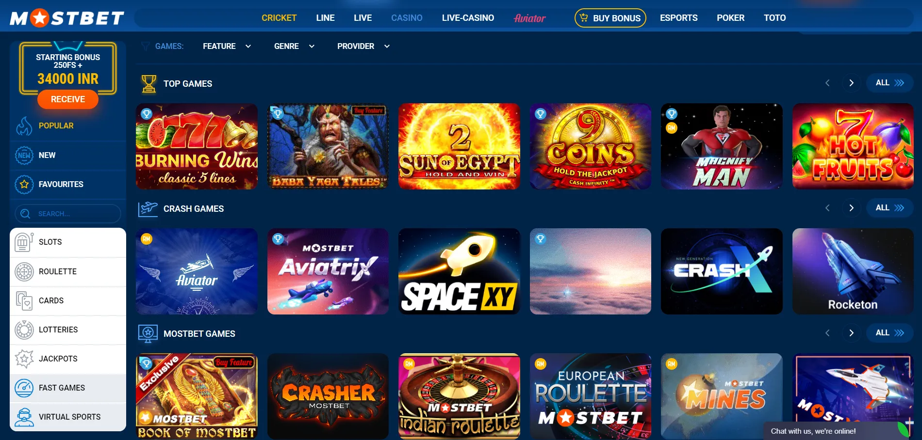 Slot machine fans are in the right place at Mostbet India. After all, the provider offers several hundred different titles, and Indian players can discover more than 3000 titles! These include classics and popular games such as Book of Dead, Book of Ra, and Starburst. In Mostbet Online, you can play new hits like Narcos with real money. All in all, the provider can convince in this area.