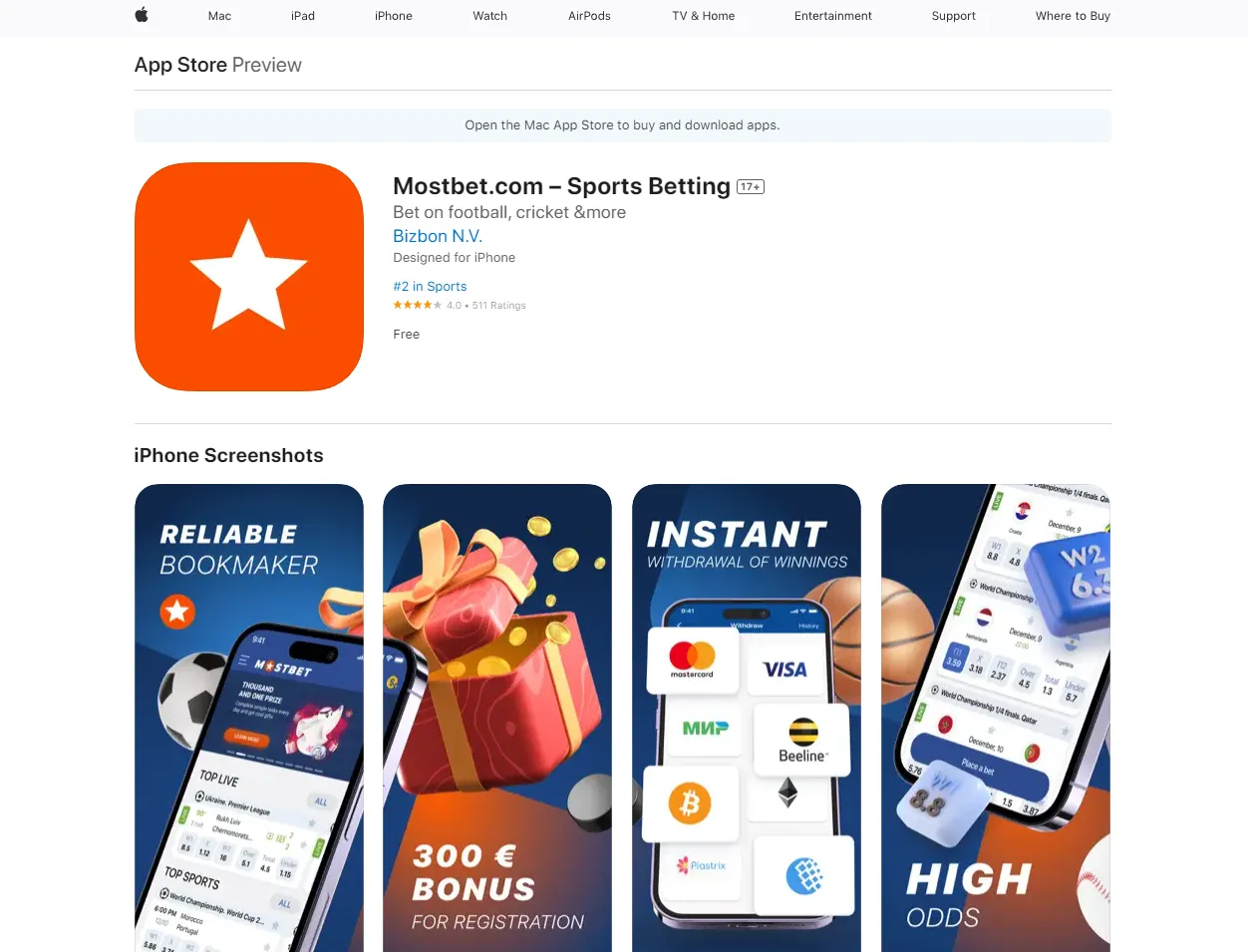 - You will then be taken to the app’s page in the App Store. When you click the “GET” button, the software will automatically begin to download and install Mostbet app free.