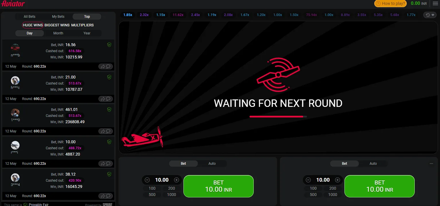 You will know how to start playing Aviator and win real money after just a few rounds. Fund your account using any deposit and withdrawal methods and the least you can bet is 10 rupees, and the most you can bet is 1,000 rupees. All that needs to be done is to watch where the plane is going and get off at the right time. It’s better to be thrifty and win a smaller amount of money than to be too generous and risk losing everything you bet. When you see the plane take off on the screen, you should always leave.