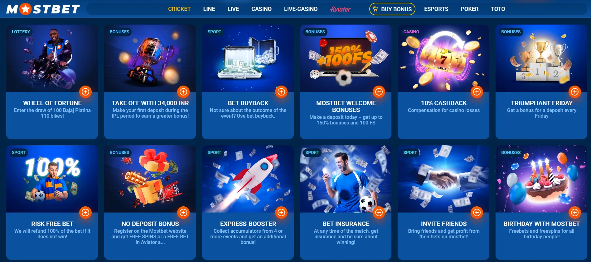 Mostbet website is renowned for giving its esteemed and devoted players exclusive discounts. Indian players in Mostbet casino can receive different exclusive offers. For instance, if you place bets on various sports, the operator can waive the cost of your every fifth wager or give you a 10% return on casino games.